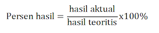 Secara umum, ketika reaksi dilakukan di laboratorium kita tidak benar-benar memperoleh hasil teoritis dari produk. Jumlah produk yang sebenarnya diperoleh disebut hasil aktual. Dengan mengetahui hasil aktual dan hasil teoretis, kita dapat menentukan persen hasil dengan rumus berikut: